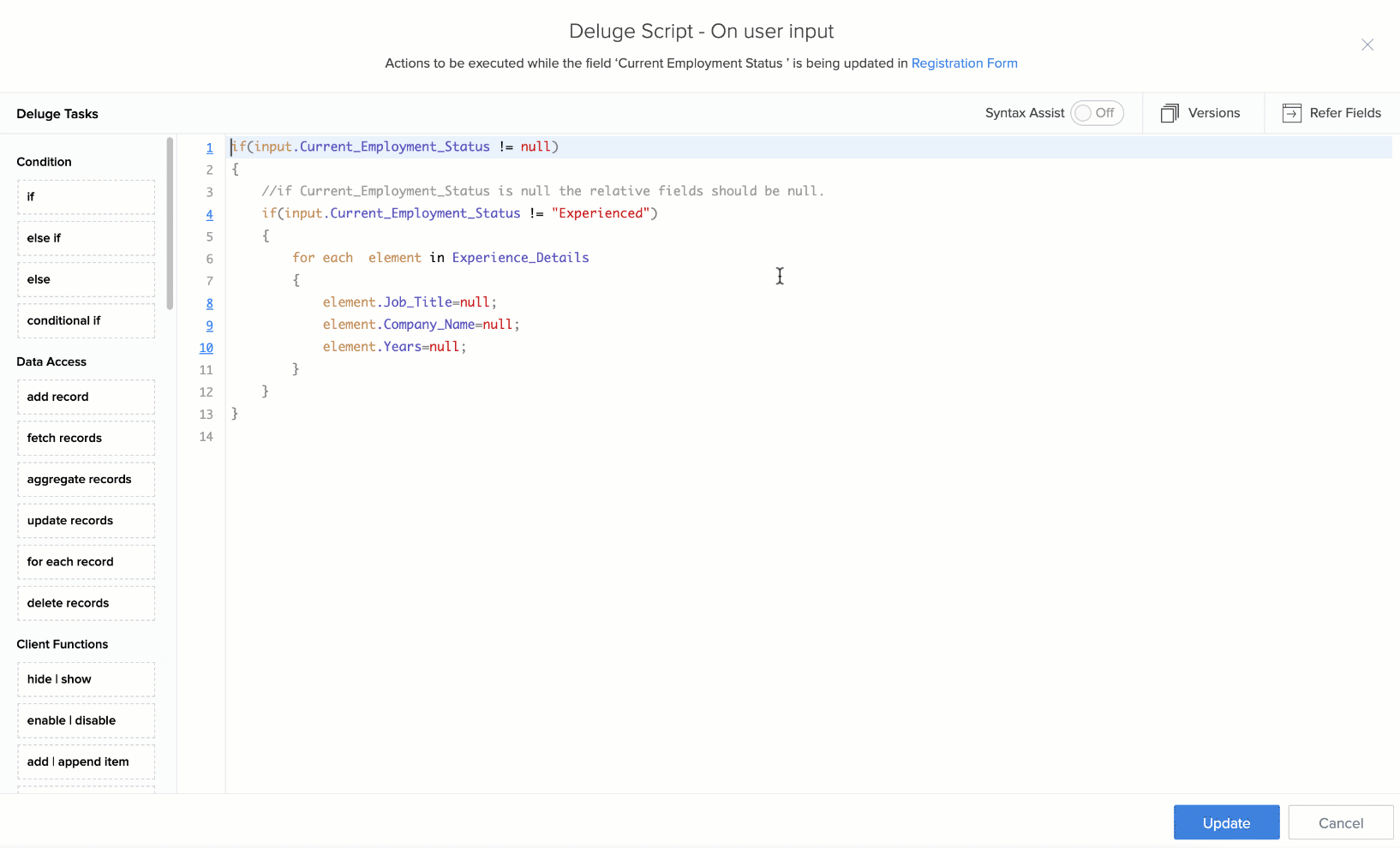 Zoho Deluge is a powerful scripting language that helps businesses by automating processes, customizing Zoho applications, and seamlessly integrating with third-party tools. We specialize in Deluge customization, helping you design workflows, create custom functions, and connect your Zoho apps with other applications to optimize business efficiency. Whether you require advanced automation, integration, or custom solutions, our expertise ensures that your Zoho applications are perfectly tailored to meet your unique requirements.